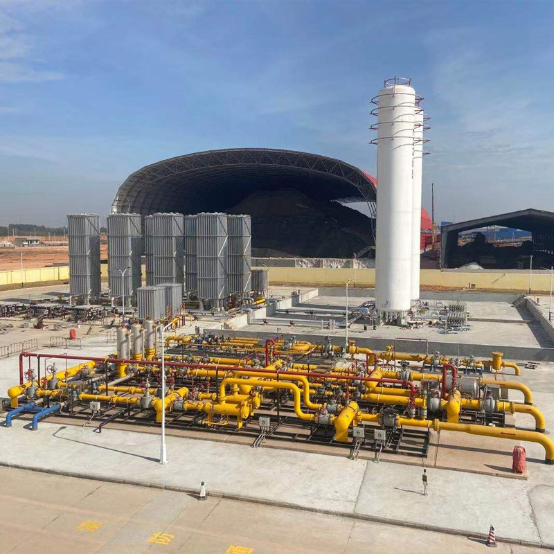 The LNG gasification station is generally assembled according to reasonable technology, integrating the LNG low temperature storage tank (cylinder or tanker), air-heated vaporizer, pressure reducing valves, chemical dosing system and metering system. It has features including compact structure, small volume and high automation degree.